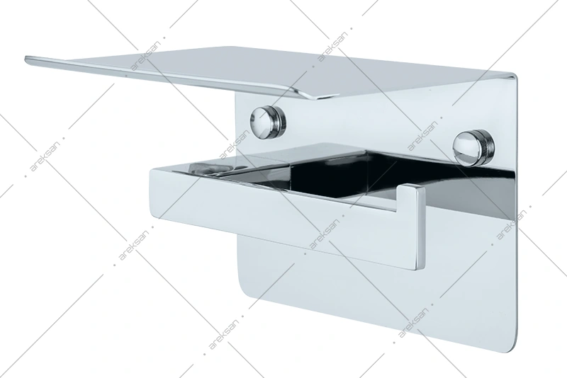 EG006 elegance etajerli tuvalet kağıtlığı, 304 kalite paslanmaz çelik gövdesiyle nem ve korozyona karşı yüksek dayanım sağlar. Üst kısımda 150 mm genişliğinde etajer raf bulunur; bu raf telefon, sabun veya diğer banyo ekşilleri için kullanıma uygundur. Alt kısımda 145 mm açıklıklı tuvalet kağıtlığı birimi standart rulo boyutlarına tam uyum sağlar. Elegance serisiyle ortak profil ve bağlantı standardı kullanılır.