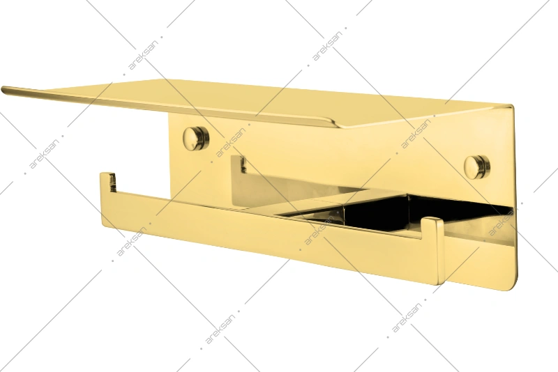 Elegance ikili etajerli tuvalet kağıtlığı EG007, tuvalet kağıdı tutucusu ile üst raf fonksiyonunu tek ünite üzerine birleştiren, iki rulo kapasiteli 304 kalite paslanmaz çelik bir banyo aksesuarıdır. 260 mm genişliğinde etajer rafı ve 210 mm açıklıklı ikili tuvalet kağıtlığı birimi Elegance serisi ile uyumlu profil ve bağlantı standardıyla üretilmektedir.