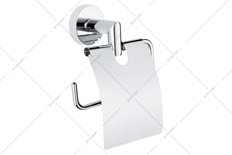 Fiesta kapaklı kağıtlık FS004, otel banyolarında tuvalet kağıdını kapalı tutarak koruyan duvara monte bir banyo aksesuarıdır. Zamak topuz ve rozet, paslanmaz çelik aksam ile galvaniz duvar bağlantı elemanından oluşan yapısıyla Fiesta serisinin kapaklı tuvalet kağıtlığı modelidir.