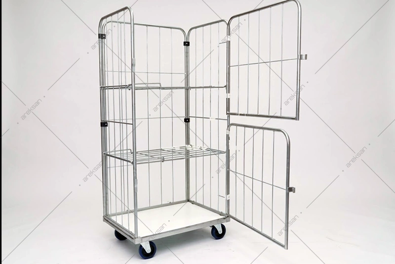 Galvaniz İki Katlı Çamaşır Arabası, galvaniz kaplamalı çift açılır kapak tasarımıyla otel çamaşırhaneleri, hastaneler, tekstil firmaları ve endüstriyel temizlik tesislerinde toplu tekstil taşıma ihtiyaçlarına yönelik üretilmektedir. Galvaniz yüzey kaplaması korozyona karşı yüksek direnç sağlamaktadır.