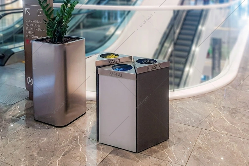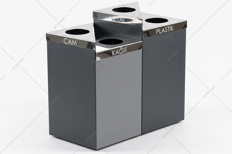 Kademeli sıfır atık kutusu SRB-192, her bölmenin farklı yükseklikte basamaklı dizilimi ve paslanmaz çelik üst kapak yapısıyla atık ayrıştırma ihtiyaçlarına yönelik üretilmiştir. 360° tam dönüş kapak mekanizması ve RAL boyalı gövdesiyle iç mekanlarda estetik bir atık yönetimi çözümü sunar. 2’li, 3’lü, 4’lü ve 5’li bölme seçenekleriyle farklı kapasite ihtiyaçlarına yanıt verir.