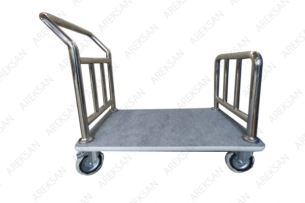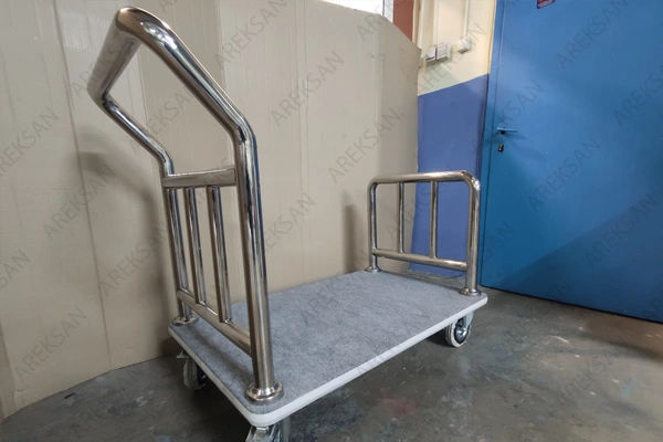 Altın tonlu titanyum kaplaması ve şık kırmızı halısıyla bu otel valiz taşıma arabası, hem konuklarınızı etkileyecek bir görünüme hem de çalışanlar için kolay kullanım avantajına sahiptir. Bellboy arabası arayışınızda, zarafet ve dayanıklılığı bir arada sunan bu model otel ekipmanları arasında öne çıkmaktadır.