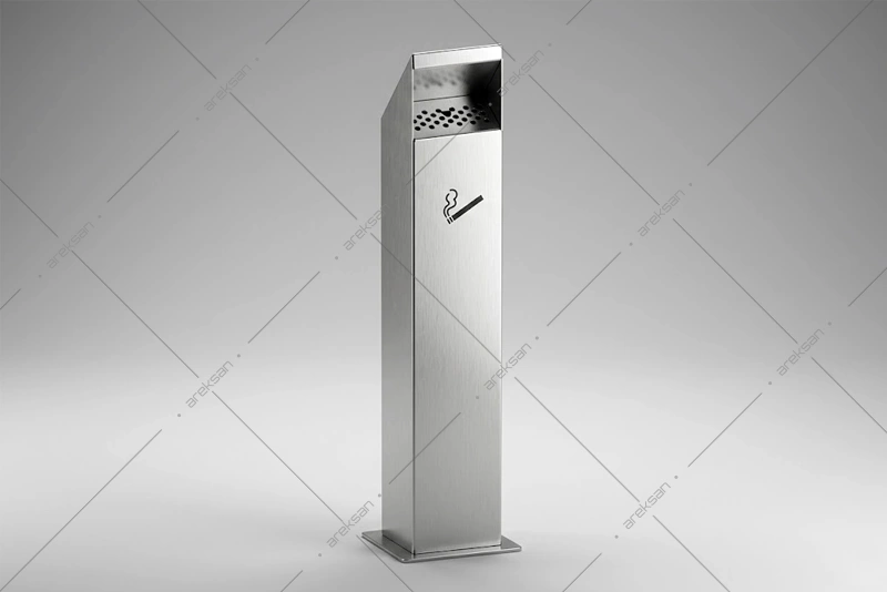 Şapkalı kare ayaklı küllük olarak bu modelin üst şapka yapısı, yağmur ve dış etkenlerden iç haznedeki izmaritleri koruyarak kötü koku ve ıslanma sorunlarını önlemektedir. 24 litrelik kapasite, yoğun kullanımlı bina girişleri ve kamusal alanlarda günlük boşaltma ihtiyacını ortadan kaldırmaktadır. 304 paslanmaz çelik seçeneği kıyı ve nemli iklimlere, 430 paslanmaz çelik iç bölge projelerine uygun maliyet etkin bir çözüm sunarken boyalı seçenek kurumsal renk bütünlüğü gerektiren projelerde tercih edilmektedir. Tüm modeller istenilen renk ve yüzey seçenekleriyle proje bazlı üretilmektedir.