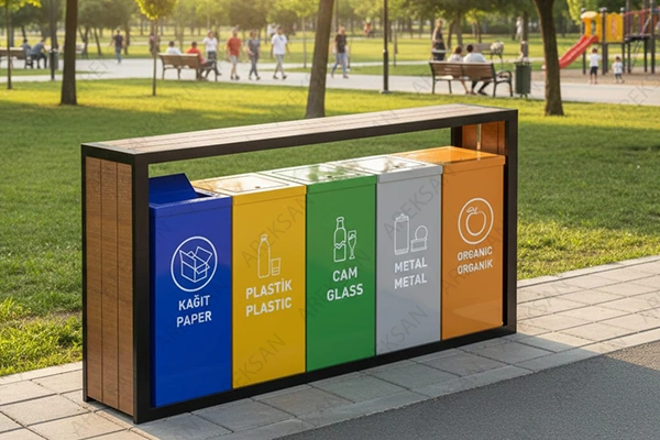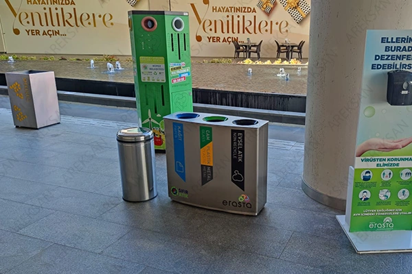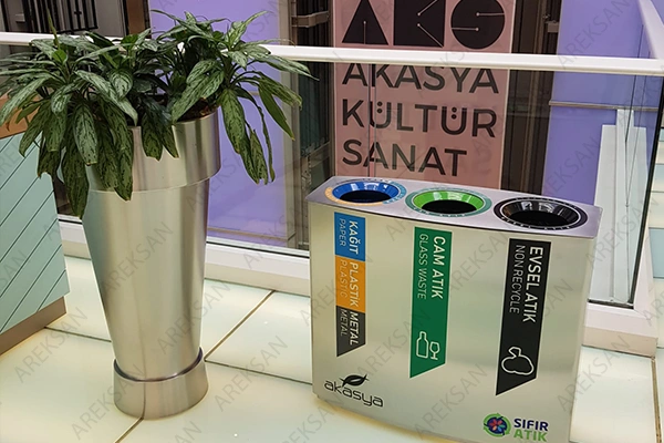Areksan geri dönüşüm paslanmaz çelik çöp kovaları, saksılar ve atık yönetim sistemleri ile hayata geçirdiğimiz projelerden bazı örnekleri aşağıda görebilirsiniz. Her proje, müşterilerimizin ihtiyaçlarına özel olarak tasarlanmış ve AISI 304 kalite paslanmaz çelik malzeme ile üretilmiştir.