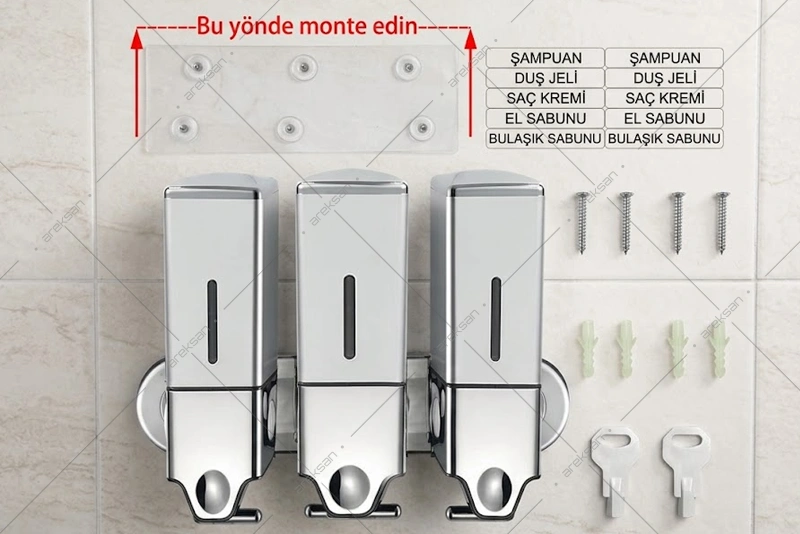 GS600T üçlü çekmeli manuel sıvı sabun dispenseri, ABS plastik şeffaf gövdesi sayesinde üç haznedeki sıvı seviyesinin dışarıdan takip edilmesine imkan tanır. Üç bağımsız 500 mL hazne sıvı sabun, el dezenfektanı ve losyon gibi farklı ürün kombinasyonlarına uygundur. Her hazne bağımsız olarak doldurulabilir. 304 kalite paslanmaz çelik alt kısım nem ve korozyona karşı yüksek dayanım sağlar. Manuel çekmeli sistem tek elle dozaj almayı kolaylaştırır. Duvara monte tasarımı tezgah üzerinde yer işgal etmez.