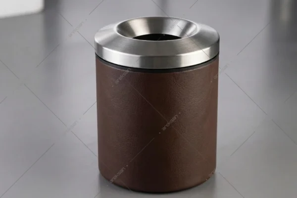 İki bölmeli otel odası geri dönüşüm kutusu olarak bu modelin açık bölme tasarımı, misafirlerin atıklarını hızlıca doğru bölmeye bırakabilmesine olanak tanımaktadır. Kompakt silindirik gövde, otel odası sehpası veya dolap kenarı gibi sınırlı alanlara uyum sağlamaktadır. Renk seçenekleri ve bölme sayısı proje gereksinimlerine göre değiştirilebilmekte; tüm modeller istenilen renk ve yüzey seçenekleriyle proje bazlı üretilmektedir.