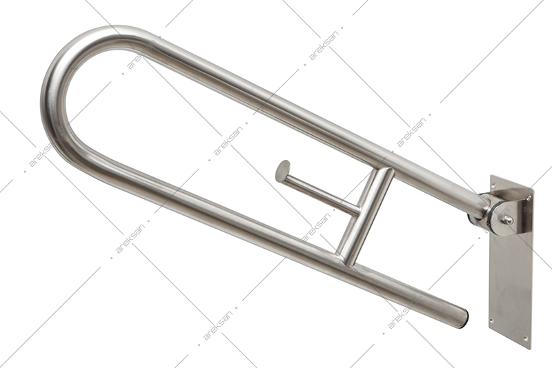AR-501 kodlu WC kağıtlıklı engelli tutunma barı, 304 kalite mat paslanmaz çelikten argon kaynak ile üretilmektedir. Hareketli katlanır yapısı kullanılmadığında duvara dik konumda kalır ve alan tasarrufu sağlar. Ortasında entegre tuvalet kağıdı tutucusu bulunur. Klozetin her iki yanına monte edilebilir. Areksan üretimidir.